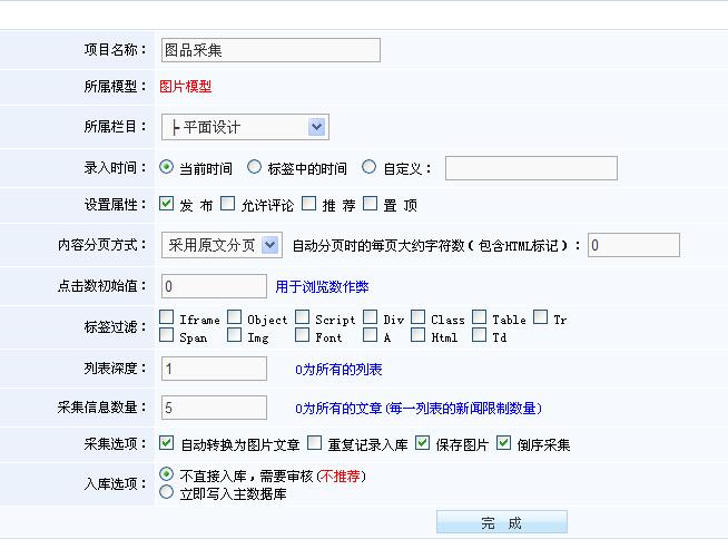 三、以上設(shè)置好后點擊完畢,然后就可以進行采集了