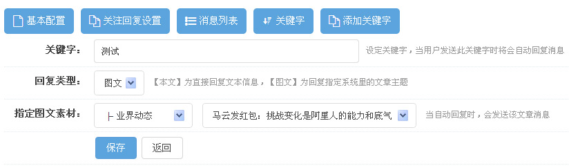 四、設置成功后,進入微信公眾號中,輸入您設置的關鍵詞即顯示出設置的信息