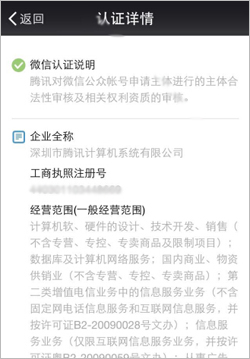 2、微信認(rèn)證后,用戶將在微信中看到微信認(rèn)證特有的標(biāo)識(shí)。