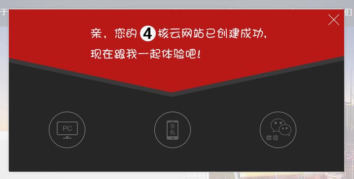 8.出現(xiàn)該界面的時(shí)候,表示您已經(jīng)成功創(chuàng)建試用站,現(xiàn)在您可以點(diǎn)擊【PC】、【手機(jī)】、【微信】這些按鈕進(jìn)行預(yù)覽